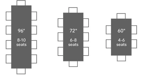 Maximize seating space for a rectangular table by using host chairs or armchairs at the head and armless chairs along the sides. Chairs for round and square tables should be armless to maximize comfort for everyone.