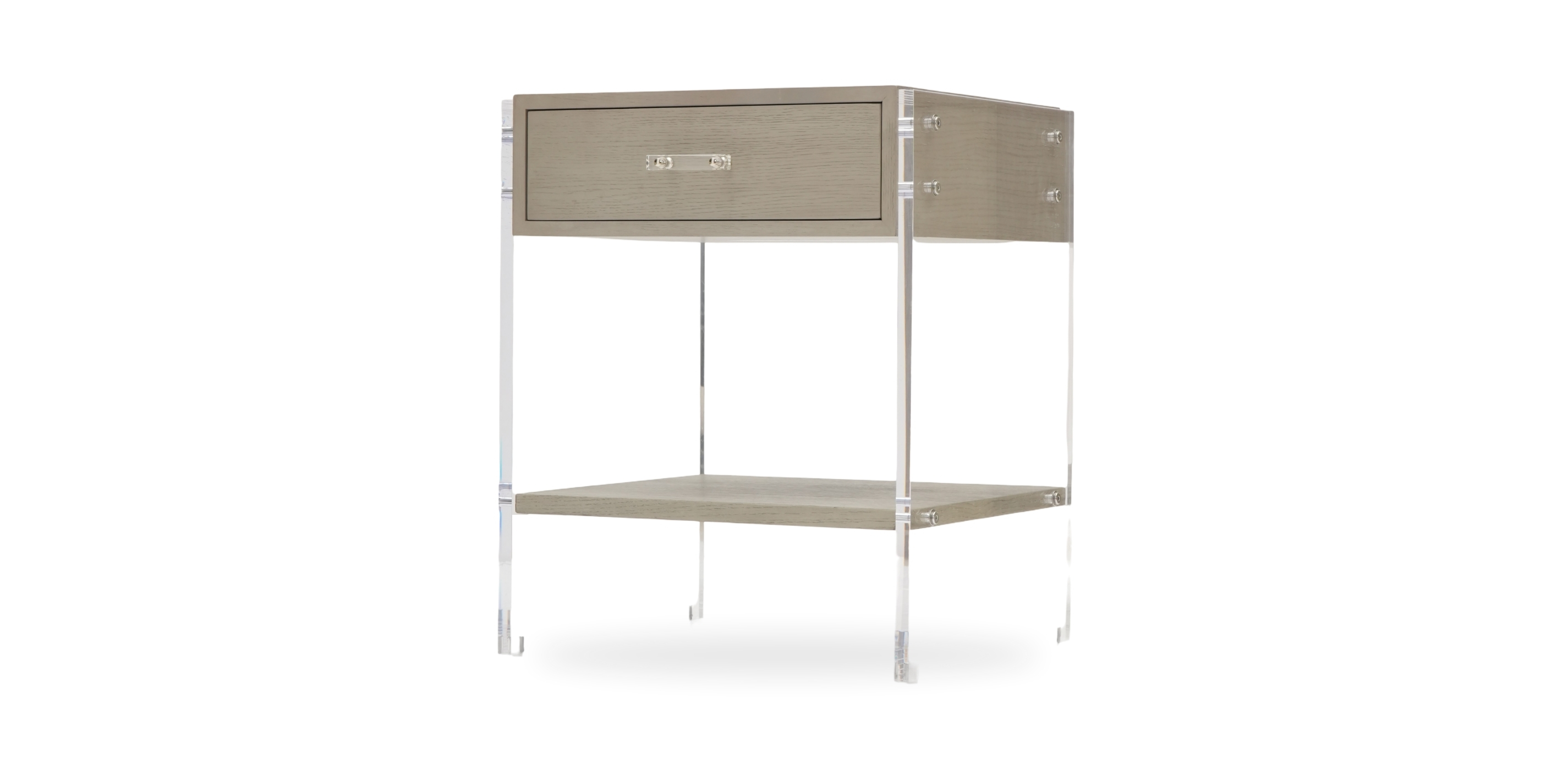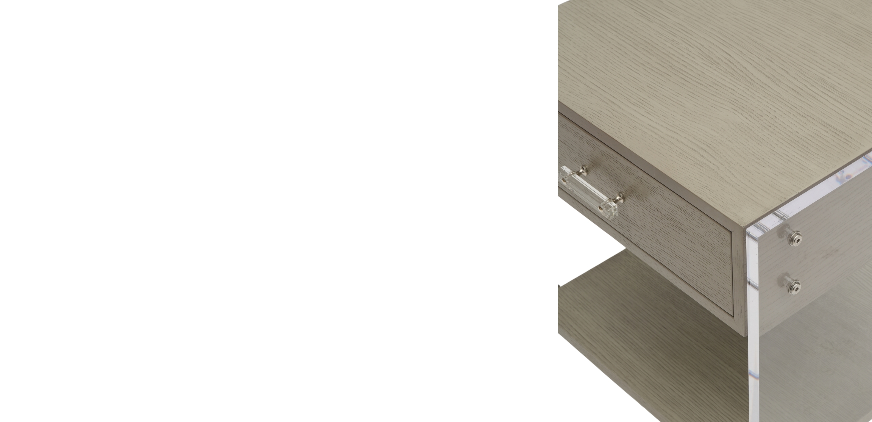 Crafted from poplar with oak veneers •Acrylic sides •One storage drawer with soft-close glides