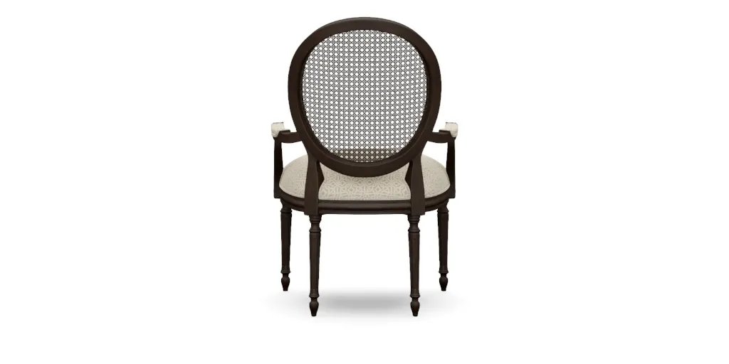 efined without ruffles. You'll be sitting pretty on this French-inspired chair. The cane back gives the piece an air of lightness. To bring in a garden feeling, you might choose to have the cane hand-painted with a lattice pattern. With exquisite hand-detailing and double-welting.