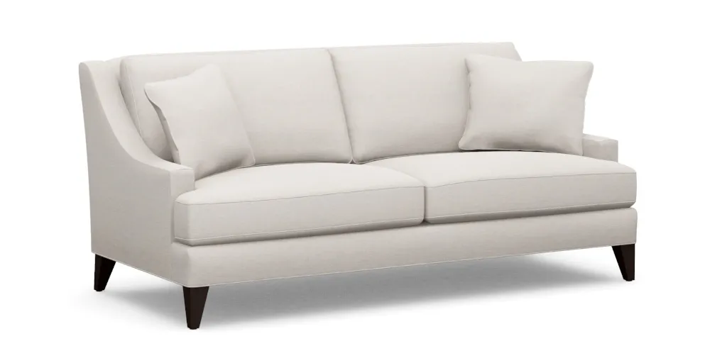 Regency-style sloped arms. Clean lines. Tapered legs. Loose pillow backs and T-shaped cushions. Emerson is effortlessly elegant. Tailored by hand in our North American workshops, it's available with custom options galore, including your choice of leather, fabric, nailhead trim, cushion fill, and leg finish.