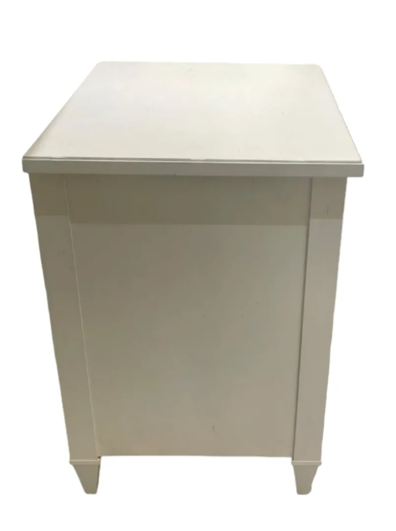 Smaller in stature but still full of roomy storage, our Jason small night table is a bedside beauty. Its unassuming outline, flanked by traditional fluted pilasters and elevated with transitional decorative pulls, houses a drawer plus open shelving. Try it alone, or in a pair. Classic small night table that mixes transitional and timeless decorative details Crafted from maple or birch Two drawers with soft-closing slides and one open storage shelf Fluted pilasters and tapered legs Decorative pull hardware in one of three finishes: Antique Brass, Blackened Pewter, or Burnished Nickel Furniture tip-over can cause serious injuries. Please use the tip-restraint kit included with this item. Click here for installation instructions. Also available: Jason double dresser, standard night table, chest, tall chest, and dresser For even more finish options, visit a Design Center