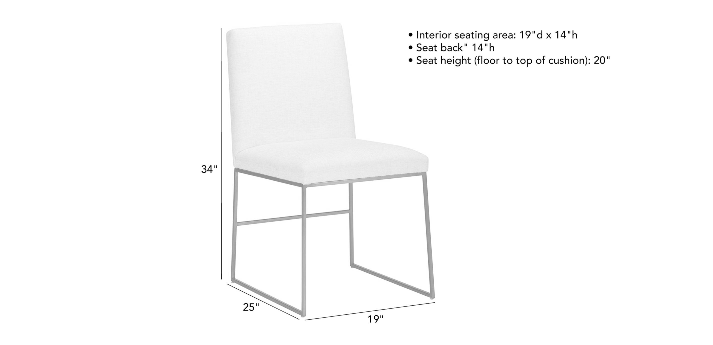 The Jewel mixed materials dining chair is a gem because of its smart, simple proportions and pared-down modern vibe. This slim-back upholstered dining chair gets high marks in both function and form, thanks to a slender profile, tight seat, and tapered back. It’s a good crossover choice for the dining room because it’s airy and understated, a new transitional classic. Sophisticated finish options for this dining chair's metal base (Champagne Brass or Oil-Rubbed Bronze) elevate its industrial influence. Jewel is also available as a counter stool and as a barstool; it’s visually light in any form, so its beauty shines through. Also available in leather. With a tight seat and slim-back, this metal dining chair is both modern and sophisticated Available in two finishes: Brass(895) and Oil Rubbed Bronze (897) and is plated over stainless steel Foam and fiber cushion provides a structured seat Engineered hardwood frame for superior strength and long-lasting durability Stain-resistant fabric prevents damage from spills; great choice for homes with families and pets Available in leather Additional custom options available in Design Centers