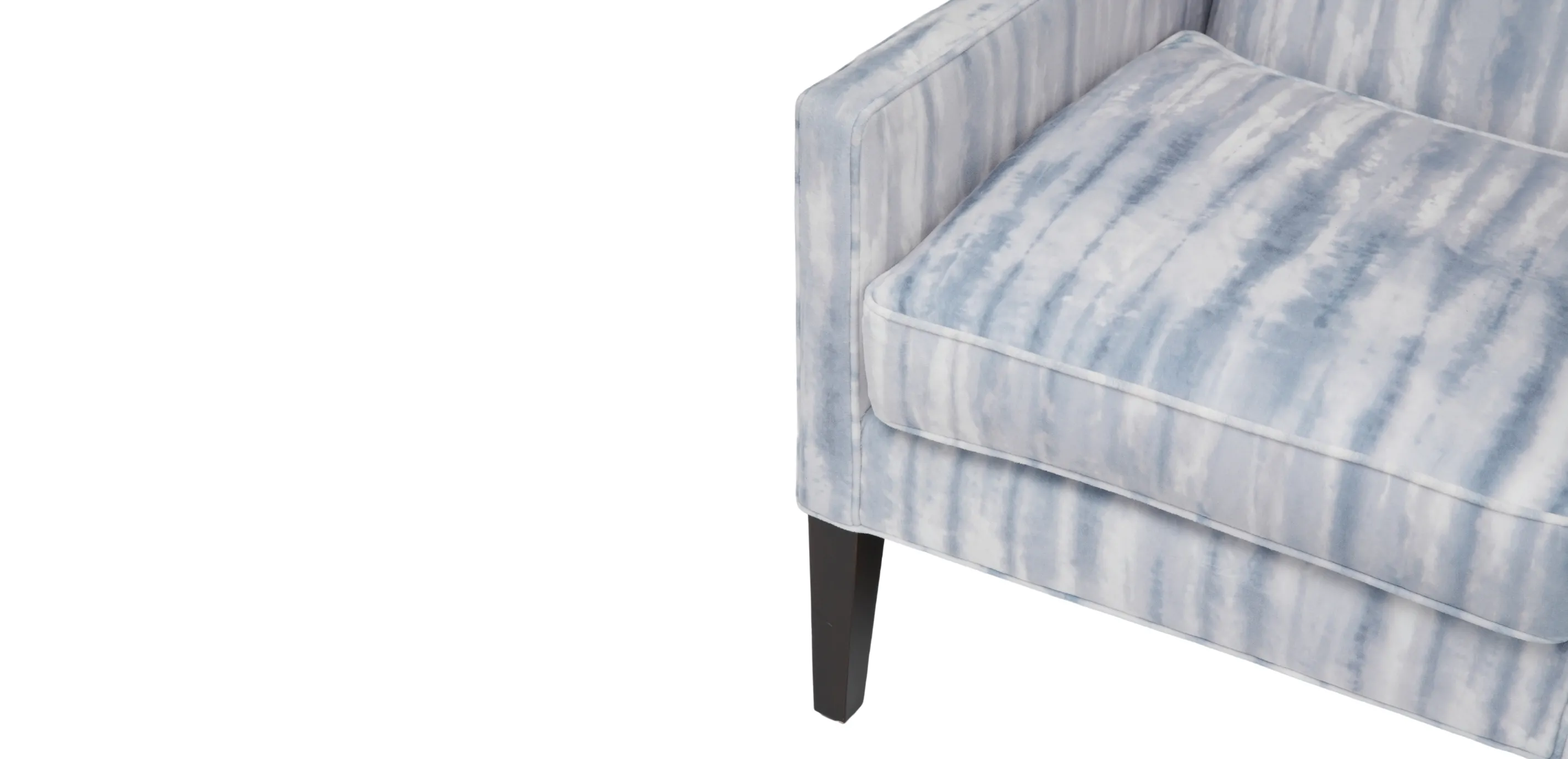 Give your design dreams wings to fly—and add our Kent wing chair to your living spaces. Inspired by traditional wingback chair lines, it gets a modern sensibility from its statuesque frame, low seat, and elegant tapered legs. Thanks to its petite silhouette and trim L-wings, this tall wing chair is a beautiful option for cozy yet sophisticated spaces. Customize it in your favorite fabric, and add nailhead trim for a one-of-a-kind designer look. A tall wing chair with petite L-wings and tapered legs for a modern profile Upholster in the fabric of your choice; we offer stain-resistant options that are both beautiful and suitable for homes with families and pets An engineered hardwood frame provides superior strength and long-lasting durability Poly-wrapped foam cushions provide a soft, structured seat Tapered legs shown in Raisin (939), a rich, cool, dark brown water-based finish; optional nail head trim shown in standard pattern or alternate pattern in brass or nickel finishes Also available in leather Additional fabrics, finishes and options are coming soon! Visit your local Design Center or chat with a designer online to learn more.
