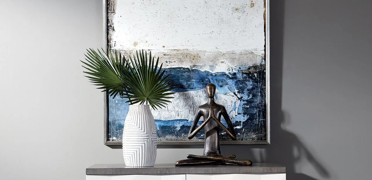 Bodhi means pure intelligence in Sanskrit; it’s the bliss of Nirvana, the state of enlightenment sought by all who practice Buddhism. Infinitely easier to attain is our Bodhi sculpture. It's a stylized sculpture in the lotus position, the traditional Buddhist meditation pose. The slender figure with long, exaggerated limbs is an example of expert sand-casting: the labor-intensive process of casting molten metal (aluminum, in this case) into an intricate mold formed in sand. Finished in antique bronze, this modern piece evokes a sense of serenity and calm.