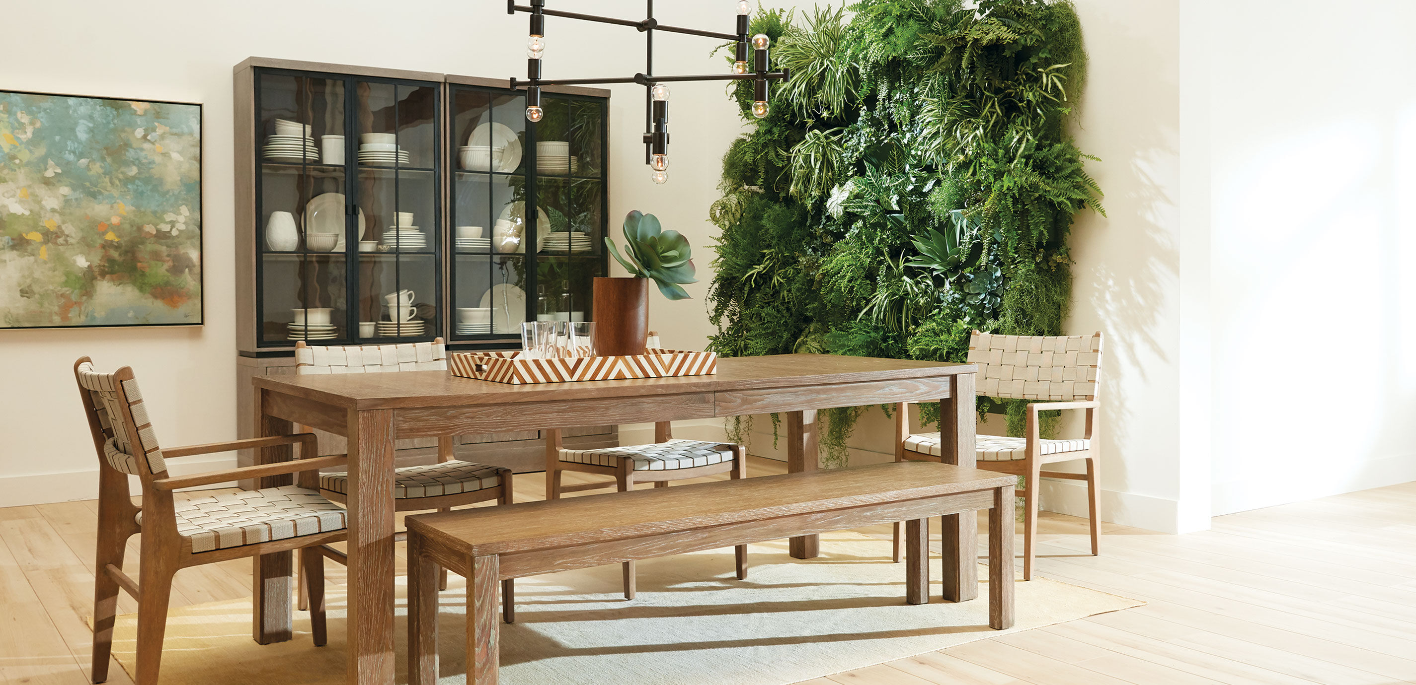 Our Vinson extension dining table is long on elbow room thanks to an additional 20" leaf. This new classic features Parsons legs with updated interior notched details and a stacked top profile in rich, wire brushed oak. Add our Vinson bench to complete the look. Quintessential Parsons-leg extension dining table. Prominent wood grain; notched leg detail. Crafted from oak* with select oak veneers; wire-brushed by hand to bring out the wood grain Extends to 98" with one 20" leaf; seats up to 10 Available in Rustic Light Brown (491), Rustic Gray (493), and Rustic Sable (497) finishes Also available:fixed-top dining table and matching dining bench
