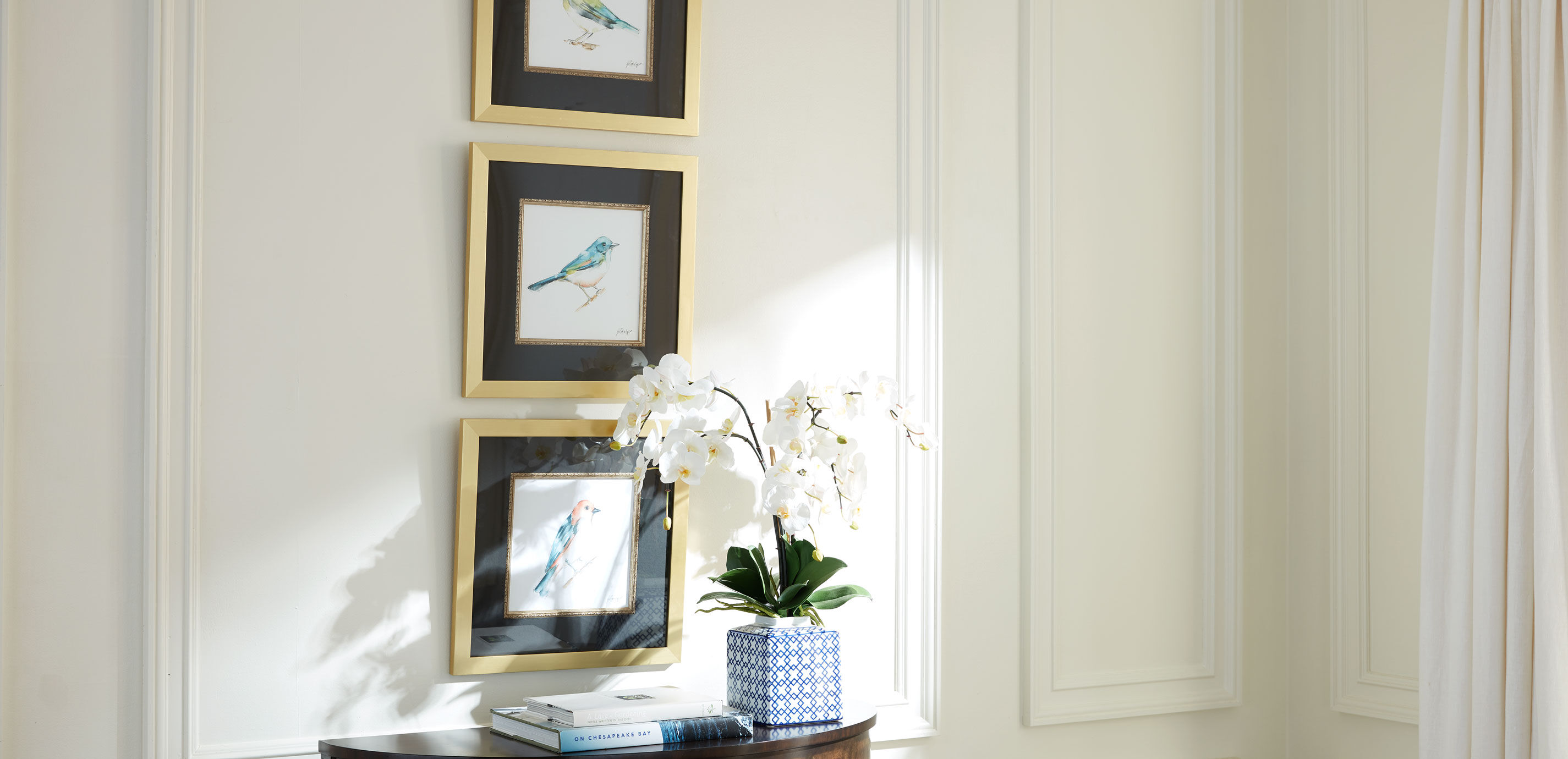 Loose gestural pencil lines and vibrant colors create quite a flutter in our Watercolor Songbird I, II & III. Perch them in any room and watch their design possibilities take flight! Hand-embellished giclée on fine art paper Set in a solid wood frame with a gold finish A gold fillet and black matboard sit within the frame Includes everything needed for simple, safe, secure, level no-wire hanging Framed by hand by master craftspeople Each piece in this series is sold separately