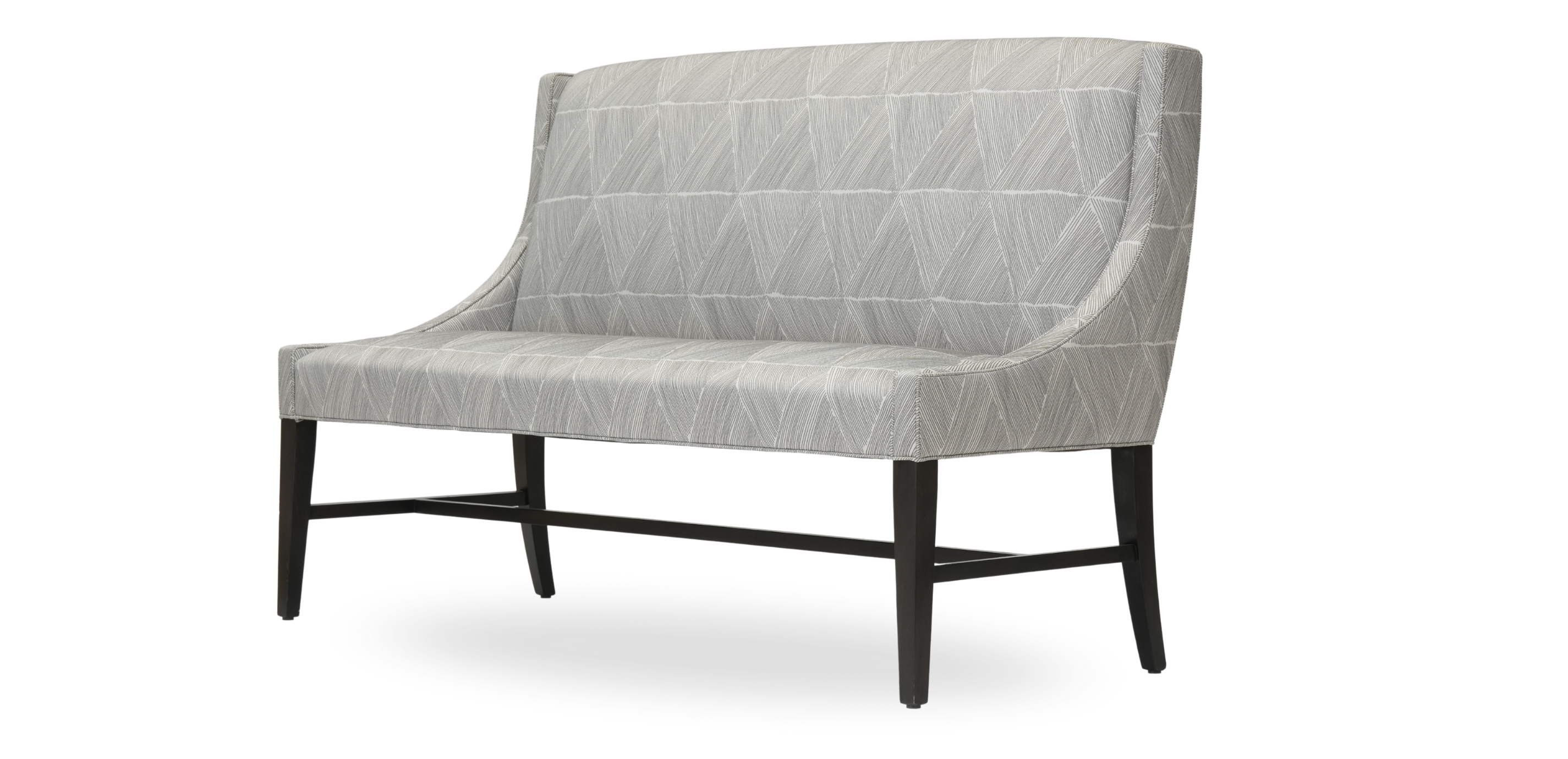 t's rooted in the past, but Aldrich is fresh and modern,too. The statement bench has softly sloped arms and a pleasing curved back profile. It sits atop tall, tapered legs secured by geometric H-stretchers. Aldrich has a look that bridges periods and styles; it works as well in a relaxed country home as it does in a formal townhouse. Sloped arms, curved back with a tight welted back and seat makes Aldrich the perfect versatile bench