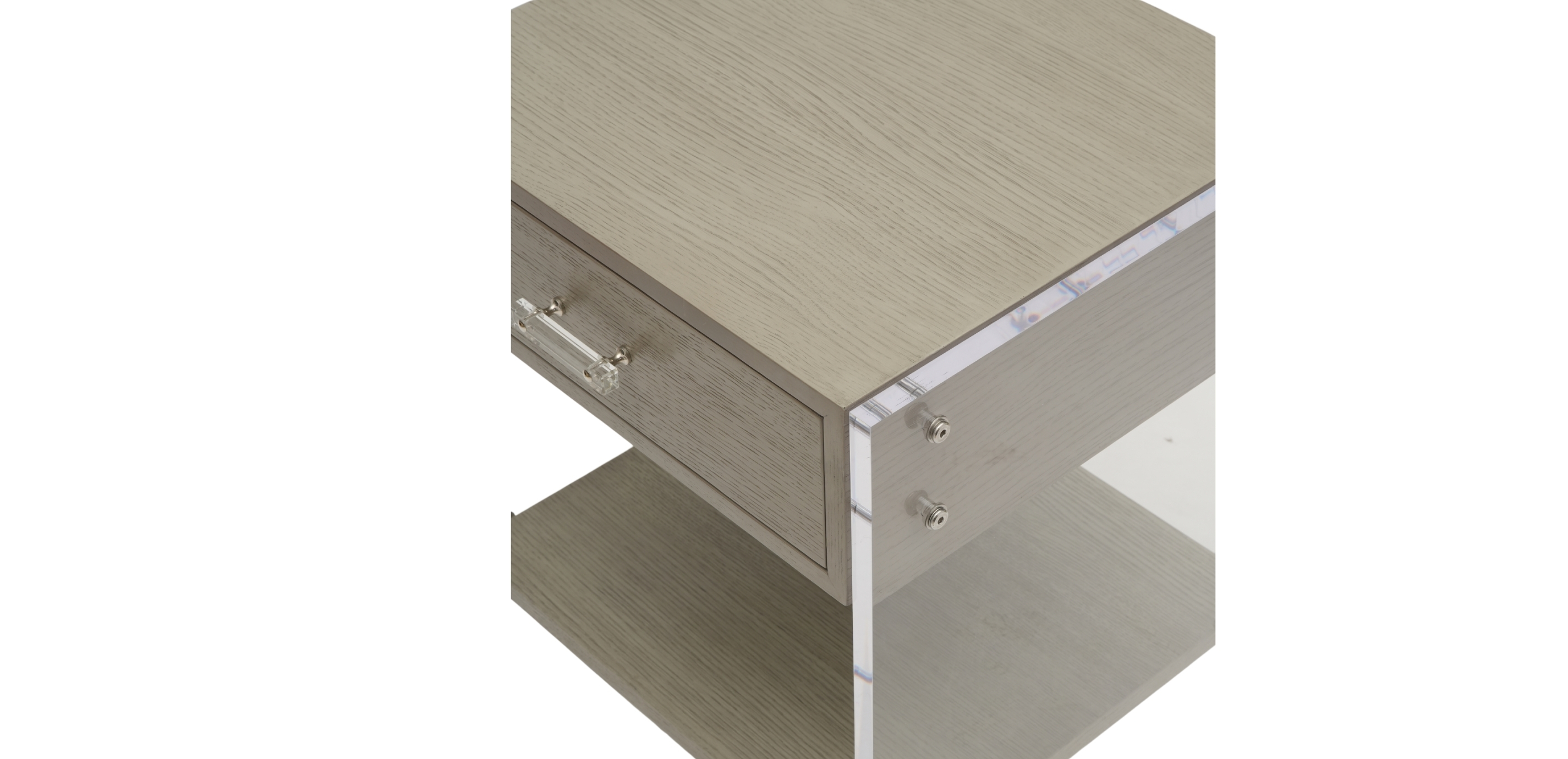 Crafted from poplar with oak veneers •Acrylic sides •One storage drawer with soft-close glides