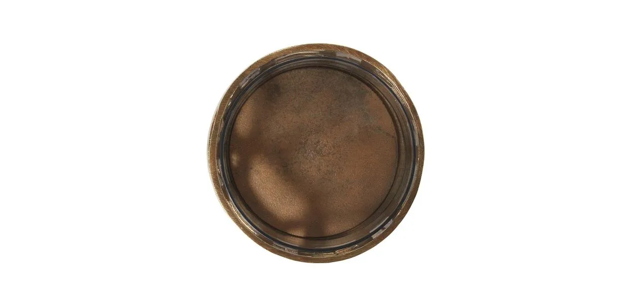 Outer holder made of aluminum with a brass finish. Inner holder made of glass.