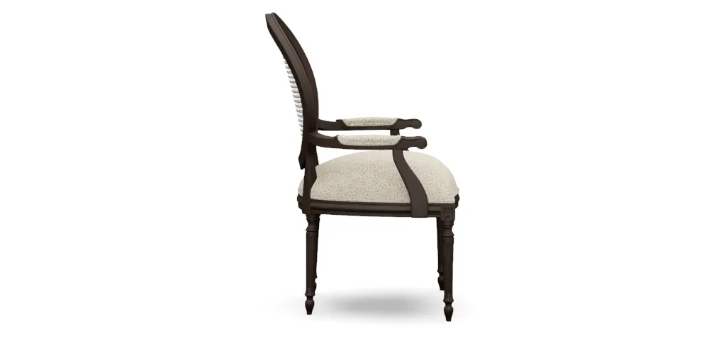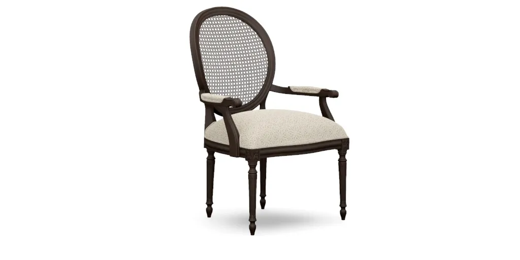 efined without ruffles. You'll be sitting pretty on this French-inspired chair. The cane back gives the piece an air of lightness. To bring in a garden feeling, you might choose to have the cane hand-painted with a lattice pattern. With exquisite hand-detailing and double-welting.