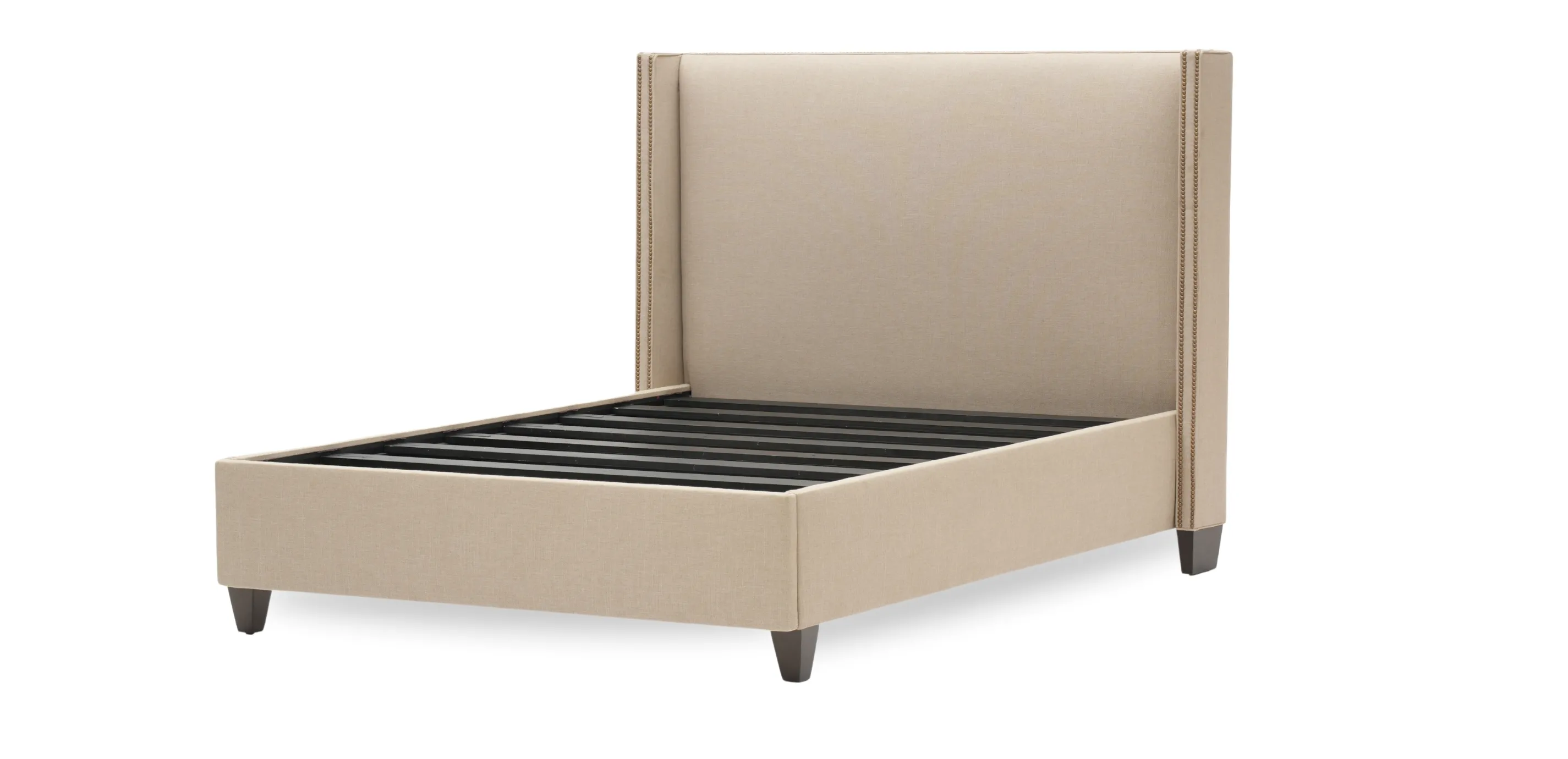 The Colton Bed features an arresting architectural headboard with slim tuxedo wings, Colton is available with options galore. Keep the height that best suits your room (there are three options), your headboard style (grid tufted or not, with or without buttons), one of three custom nailhead trim options—and of course, your favorite upholstery option from our wide selection of fabrics or leathers. Also available as a headboard only.
