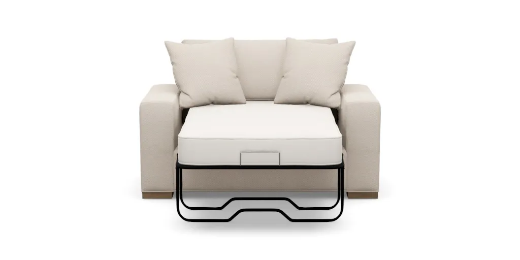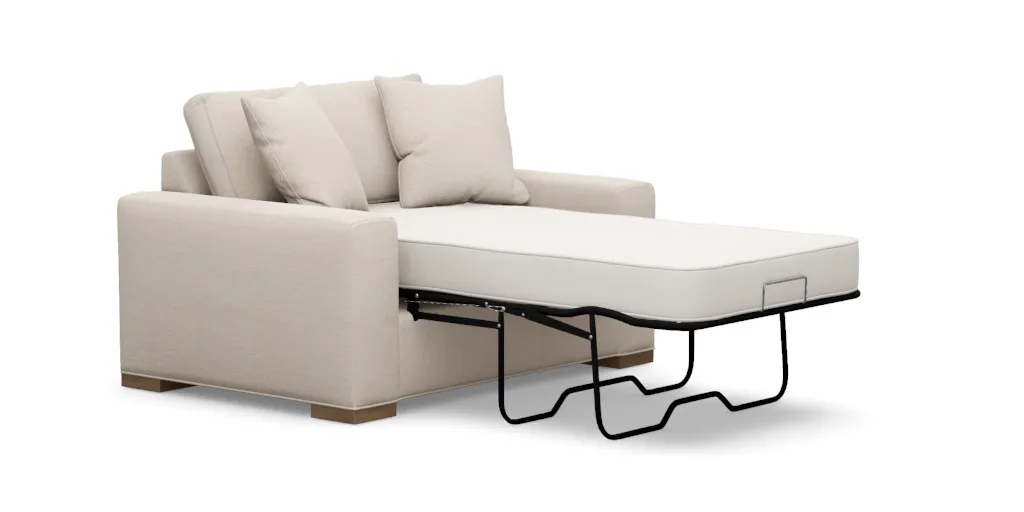 Hand-tailored in North America by Ethan Allen artisans Because our upholstery is tailored by hand—manually cut, sewn, and fitted to each frame—dimensions may vary slightly from piece to piece; dimensions listed have been rounded up to the next whole inch Interior seating area Twin Sleeper: 41"w x 23"d x 16"h; extends 90" fully opened; product weight: 183 lbs; packaged weight: 198 lbs. Full Sleeper: 58"w x 23"d x 16"h; extends 90" fully opened; product weight: 220 lbs; packaged weight: 235 lbs. Queen Sleeper: 66"w x 23"d x16"h; extends 92" fully opened; product weight: 250 lbs; packaged weight: 265 lbs. Seat height: 21" Arm height: 24" Mattress dimensions Twin sleeper: 37"w x 72"l Full sleeper: 53"w x 75"l Queen sleeper: 60"w x 75"l Construction Features Frame: Multi-ply engineered panels with glued and stapled mortise and tenon joints for extraordinary stability Springs: Heavy-gauge wire coil with protective coating minimizes body impressions and eliminates seating noises Seat cushions: Features a dense polyurethane foam core wrapped in polyester fiber Back cushions: Features a channeled jacket core filled with polyester fibers wrapped in non-woven ticking The flexible polyurethane foams used in our upholstery are certified through the CertiPUR-US® program Quilted mattress top has a plush polyester fiber fill for comfort and durable, hypoallergenic insulator pad to ensure edges won't shift, offering extra support and creating a comfortable, "no-coil" feel Air comfort mattress is available for an additional charge. Innovative air over-coil technology creates the feel of a luxury mattress in a sleeper sofa Expertly designed for outstanding comfort; tested for durability and performance Product images may be digitally rendered; final product may vary slightly from rendering. Fabric swatches and finish samples are available for most items, free of charge.