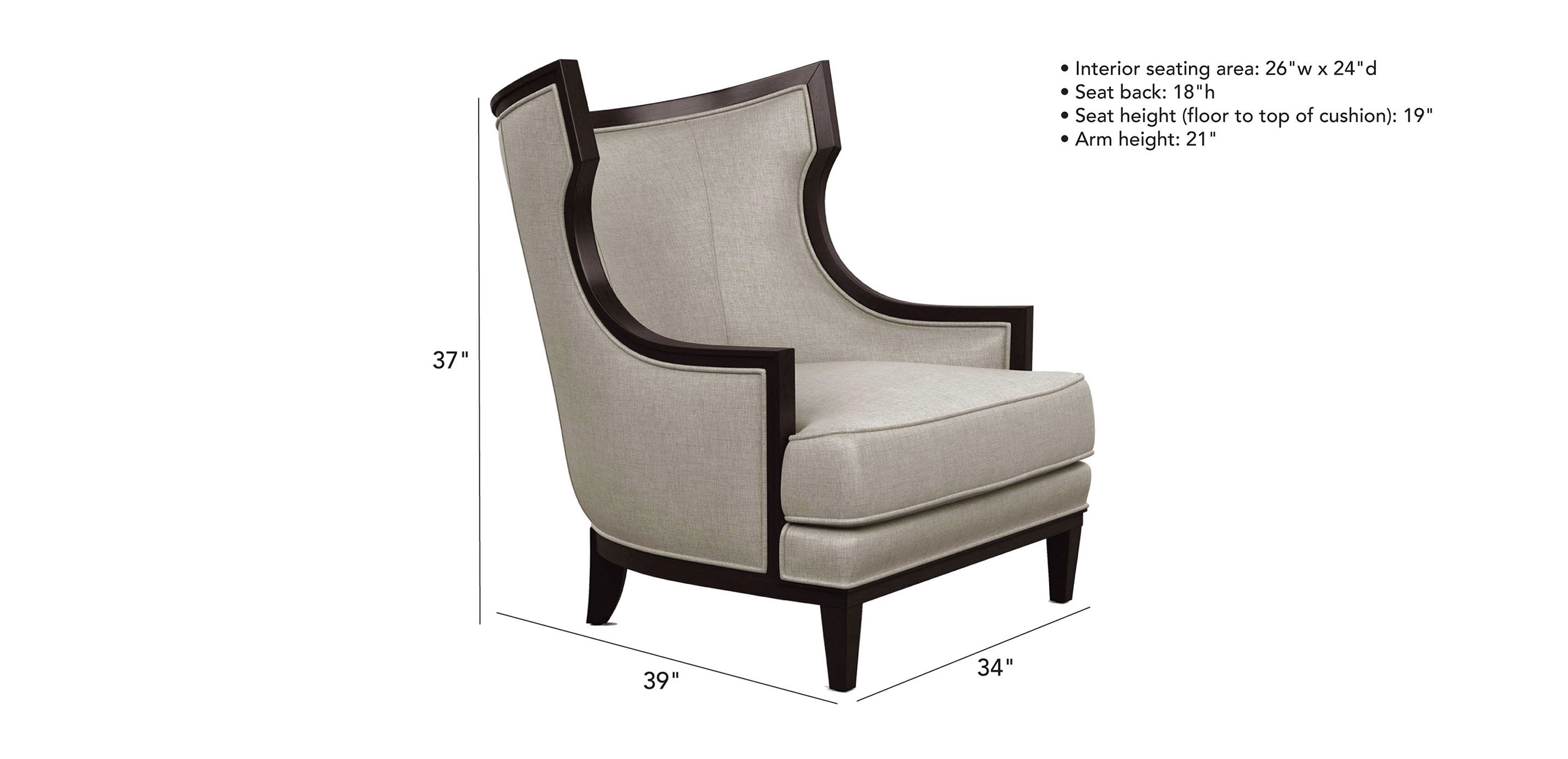 Classic klismos design meets timeless wing chair style on a bold scale. Corrine is a delight from every angle with its exposed curved wood trim, matching legs, contoured tight back, and deep cushioned seat.