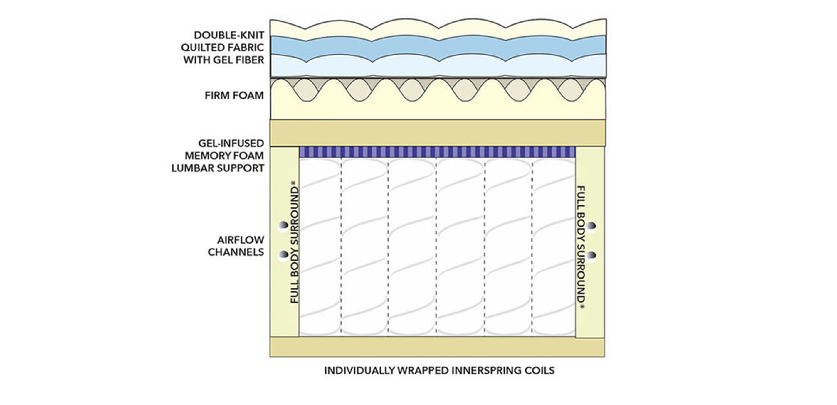 Our made-in-the-U.S.A. EA Signature™ hybrid mattress combines the cradling comfort, heat dissipation, and minimized partner disturbance of gel-infused foam with the support and bed-to-body conformity of innerspring construction. Rated well for durability, stability, and owner satisfaction—it's a best seller for a reason—it's available in firm, plush, and ultra plush to match your sleep style. 11.5" hybrid mattress designed with a combination of innersprings and gel-infused foam Low-maintenance, non-flip, and American made; crafted from hypoallergenic fibers, foam, and cushioning. All foam meets CertiPUR-US® standards for content, emissions, and durability. Individually wrapped coils, triple-tempered for exceptional durability, provide superior support and better bed-to-body conformity while reducing partner disturbance. Flexatron® hypoallergenic self-ventilating insulator both absorbs and relieves pressure. Full Body Surround® foam enhances airflow and ensures edge-to-edge support. Most people prefer to sleep 24" to 30" above the floor. We offer flat foundations in multiple heights, a platform bed base with optional drawers, and an adjustable-height motion base. Combine a foundation with your bed frame and your EA Signature™ mattress to position your sleep surface exactly where you want it. All products sold separately; click on the products below for more information. 10-year warranty on materials and workmanship when used with a properly supportive flat foundation or motion base. We recommend our EA Signature TM foundation, our Prodigy Adjustable Bed Base. or our ultra low foundation. Find our recommended mattress and foundation pairings for Ethan Allen beds here. For other beds, we recommend that the surface of your mattress be 24" to 30" above the floor. To calculate sleep surface height, add the distance between your bed base and your floor, the height of your foundation, and the height of your mattress. Click Designer Chat or talk to your Ethan Allen designer if you need help choosing. Ships via Premier In-Home Delivery. At checkout, let us know if you'll need your old mattress to be removed. Local recycling fees may apply.