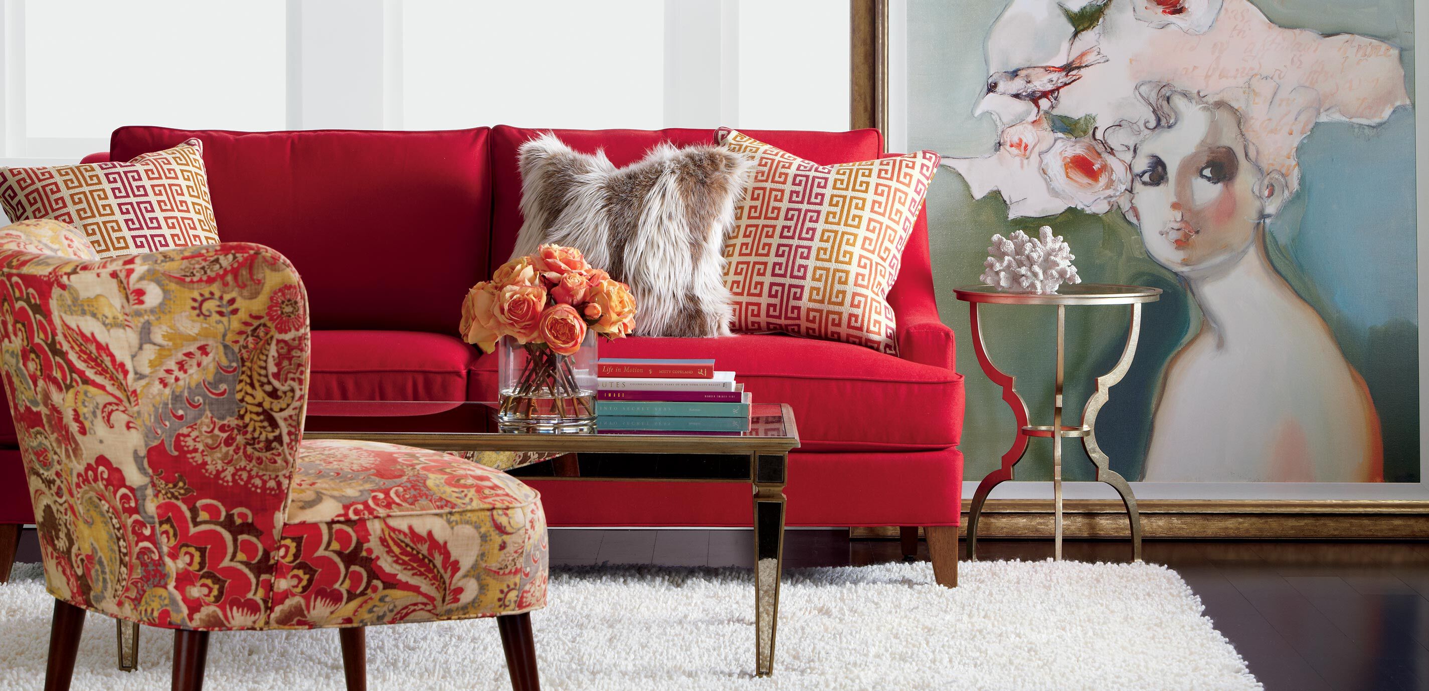 Regency-style sloped arms. Clean lines. Tapered legs. Loose pillow backs and T-shaped cushions. Emerson is effortlessly elegant. Tailored by hand in our North American workshops, it's available with custom options galore, including your choice of leather, fabric, nailhead trim, cushion fill, and leg finish. Sloped arms combined with loose welted back cushions and T-cushions make Emerson effortlessly elegant Our standard high-quality foam and fiber cushions along with two 19" toss pillows provide lasting comfort and style versatility. Visit a Design Center for additional options. Engineered panel frame for superior strength and long-lasting durability Legs finished in Raisin (939), a rich, cool dark brown water-based finish Stain-resistant fabric prevents damage from spills; great choice for homes with families and pets Also available in leather The fabrics and finishes shown here are our most popular, but if you don't see what you're looking for, visit a Design Center