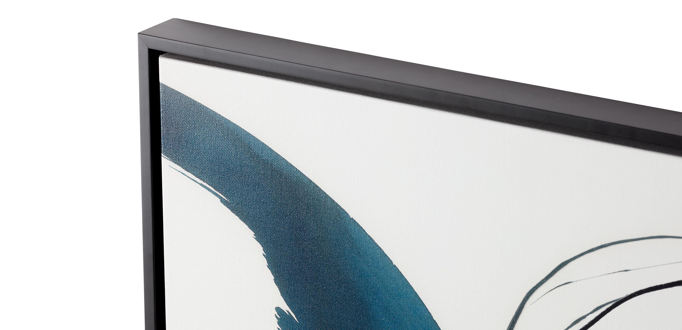 Floated in a solid wood frame with a painted black finish
