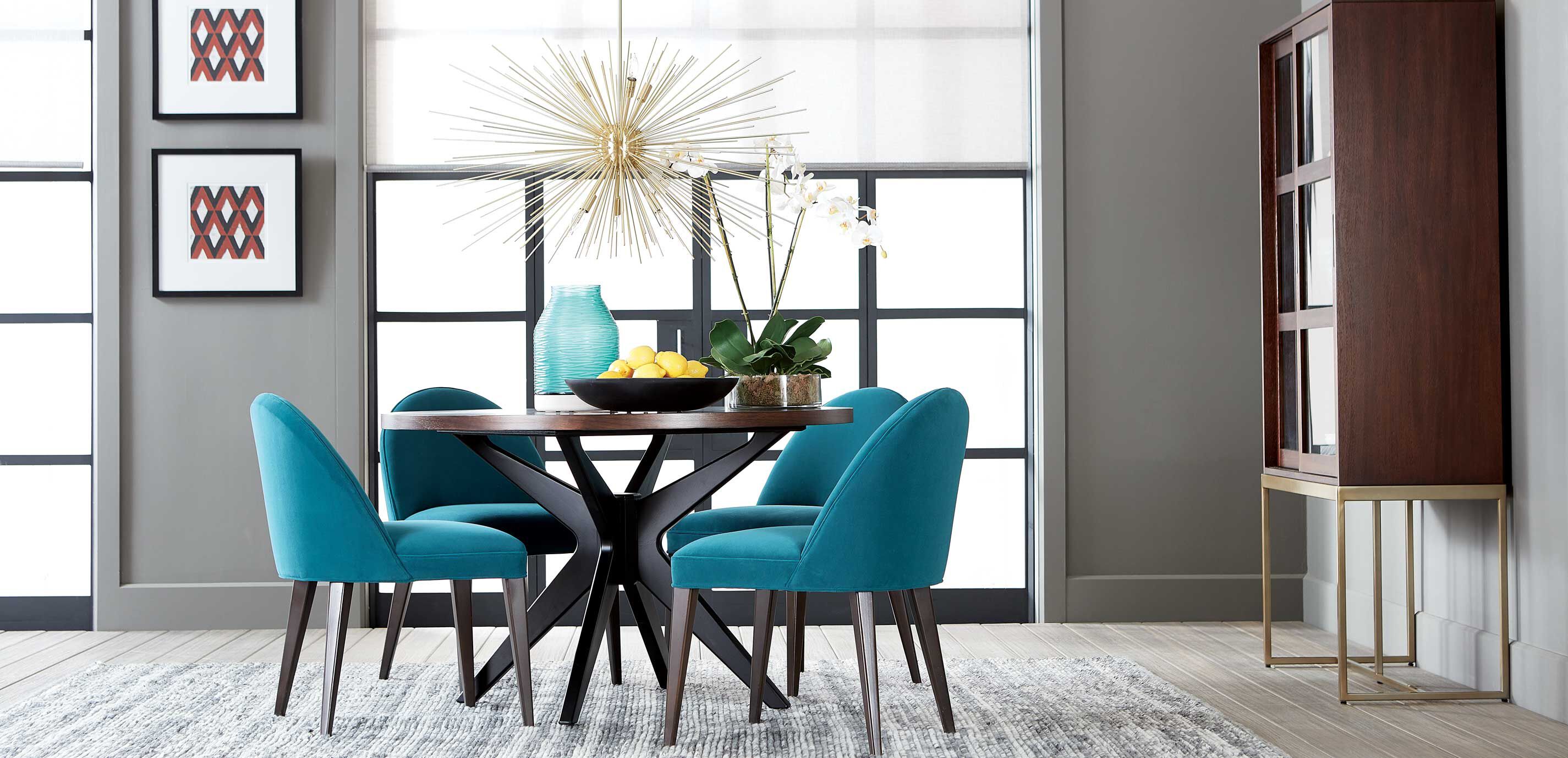 A modern round dining table that’s sculptural, dynamic, and drop-dead gorgeous: Fashioned of wire-brushed Indonesian mahogany solids with a walnut veneered top, Hazelton features a starburst beauty of a base that’s sure to wow you. Available in multiple sizes and finish combinations that will fill any room with style, drama, and presence. Artisan-crafted modern round dining table with starburst base Crafted from Indonesian mahogany solids and walnut veneers Fixed top 36" diameter seats up to 2, 48" diameter seats up to 4, 60" diameter seats up to 6 Two-tone finish application Easy-to-use levelers ensure stability, even on uneven floors
