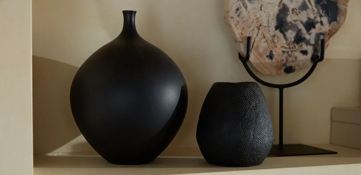 Our Issa black round vase is handcrafted by artisans who live near Venice; they've practiced their craft in the shadow of Mount Grappa for generations. They shape the form of this ceramic black vase by hand and then cover it with opaque paint that has a satin matte effect. Group it with our other Issa decorative vases for a dramatic display.