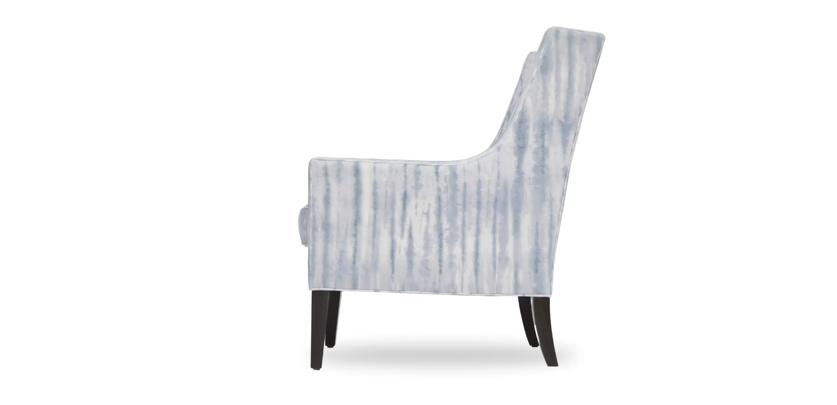 Give your design dreams wings to fly—and add our Kent wing chair to your living spaces. Inspired by traditional wingback chair lines, it gets a modern sensibility from its statuesque frame, low seat, and elegant tapered legs. Thanks to its petite silhouette and trim L-wings, this tall wing chair is a beautiful option for cozy yet sophisticated spaces. Customize it in your favorite fabric, and add nailhead trim for a one-of-a-kind designer look. A tall wing chair with petite L-wings and tapered legs for a modern profile Upholster in the fabric of your choice; we offer stain-resistant options that are both beautiful and suitable for homes with families and pets An engineered hardwood frame provides superior strength and long-lasting durability Poly-wrapped foam cushions provide a soft, structured seat Tapered legs shown in Raisin (939), a rich, cool, dark brown water-based finish; optional nail head trim shown in standard pattern or alternate pattern in brass or nickel finishes Also available in leather Additional fabrics, finishes and options are coming soon! Visit your local Design Center or chat with a designer online to learn more.
