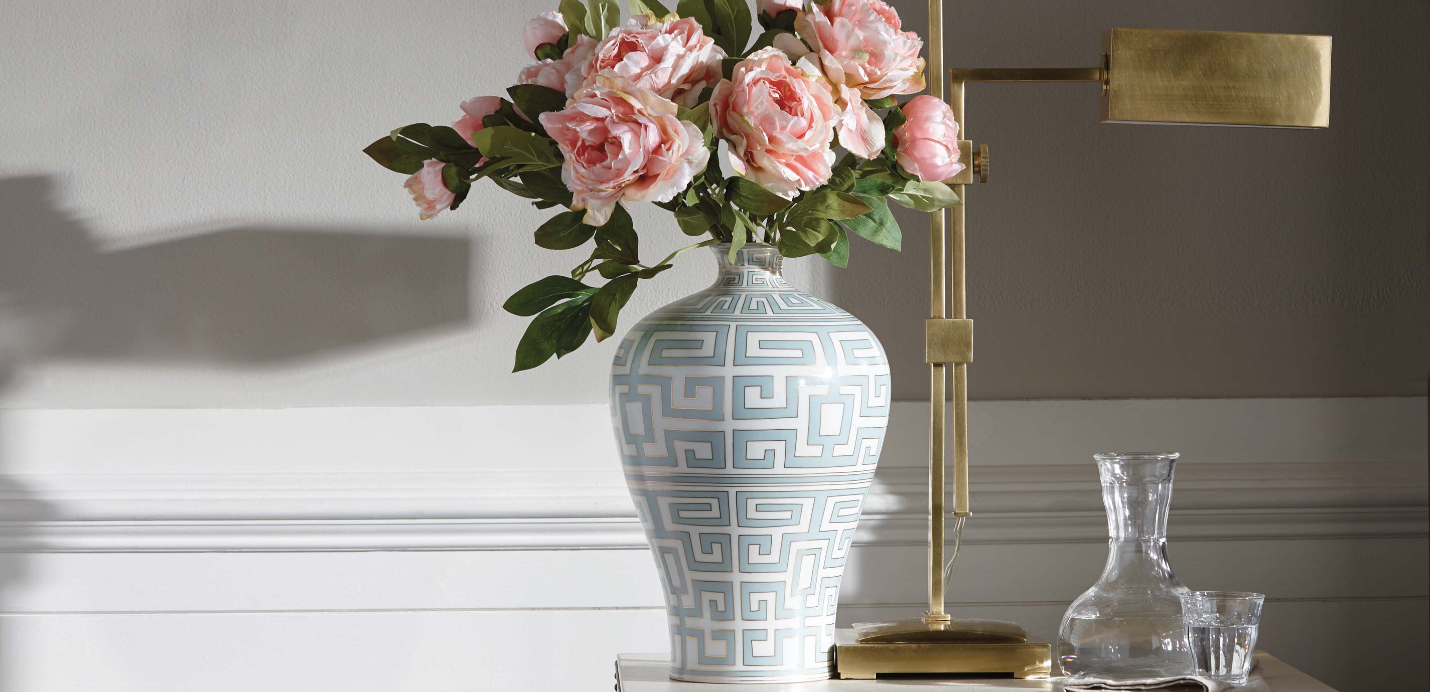 Ethan Allen works with carefully chosen artisans from China's Jiangxi region to make these exceptional, intricately painted Athena blue jars. This region, famous for its porcelain jar craftsmanship, has been making handmade decorative jars for generations. Some artisans apprentice for as many as ten years just to master the underglazing technique. Made of porcelain White with pink or blue and gold painted outline Available in 2 sizes For decorative use only