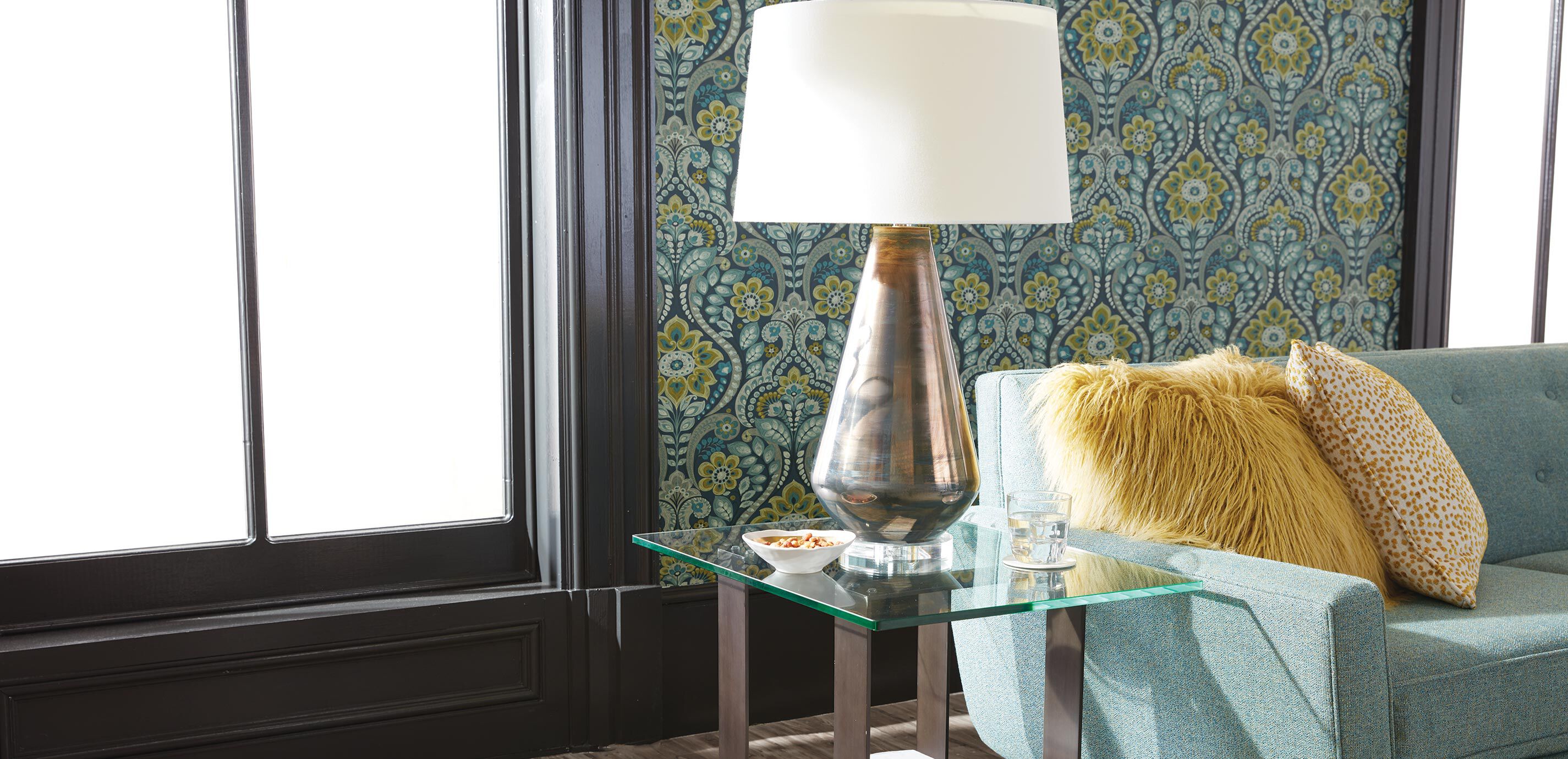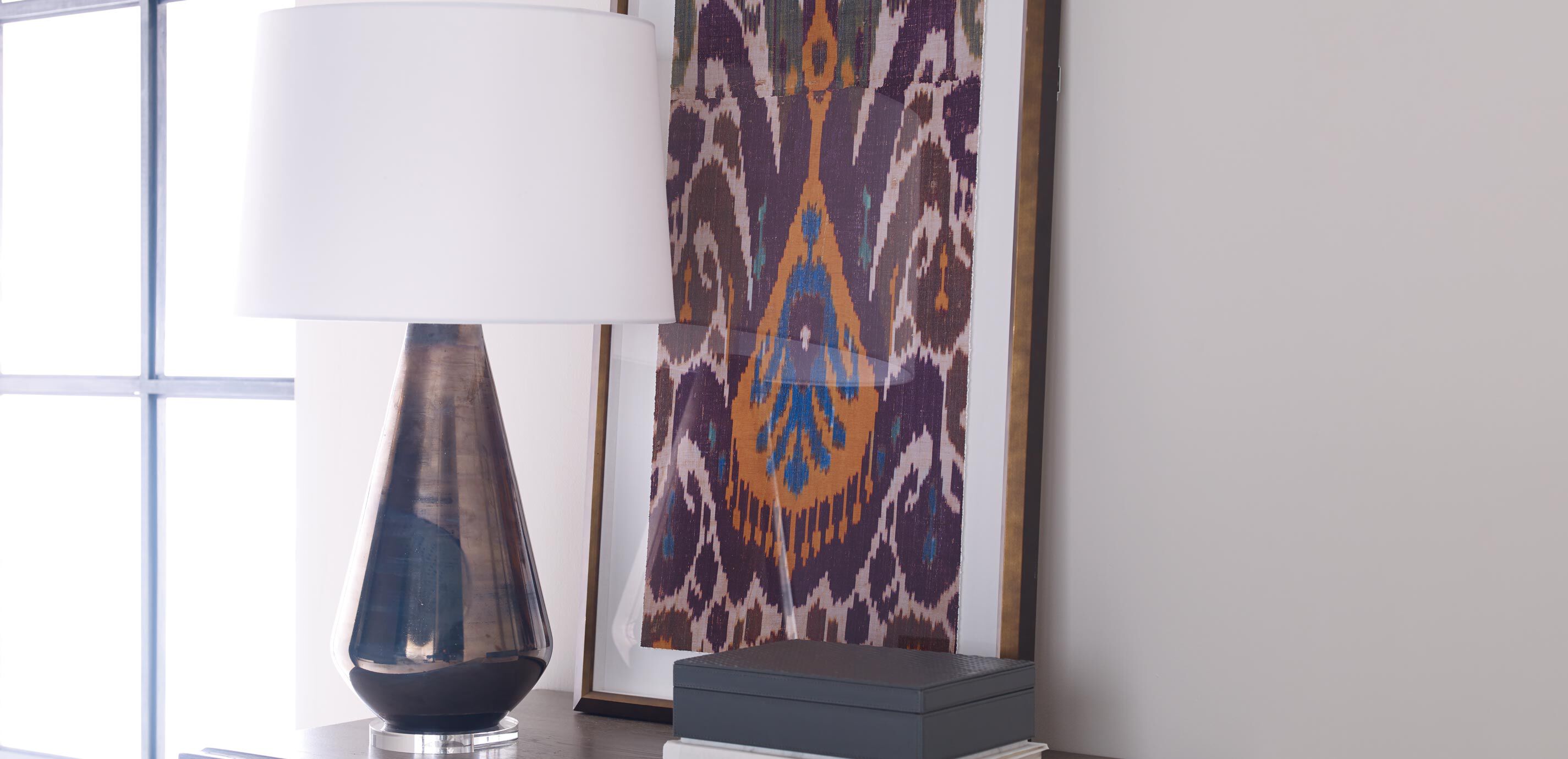 When you say metal and glass to a designer, mercury glass is likely one of the first things they'll think of. Our designers took a different course. The distressed metallic finish of our Marian lamp takes a more sophisticated direction, with a bit of industrial chic thrown in for good measure. Made of glass Distressed metallic finish White cotton hardback shade Uses one 23-watt LED bulb; three-way switch UL listed