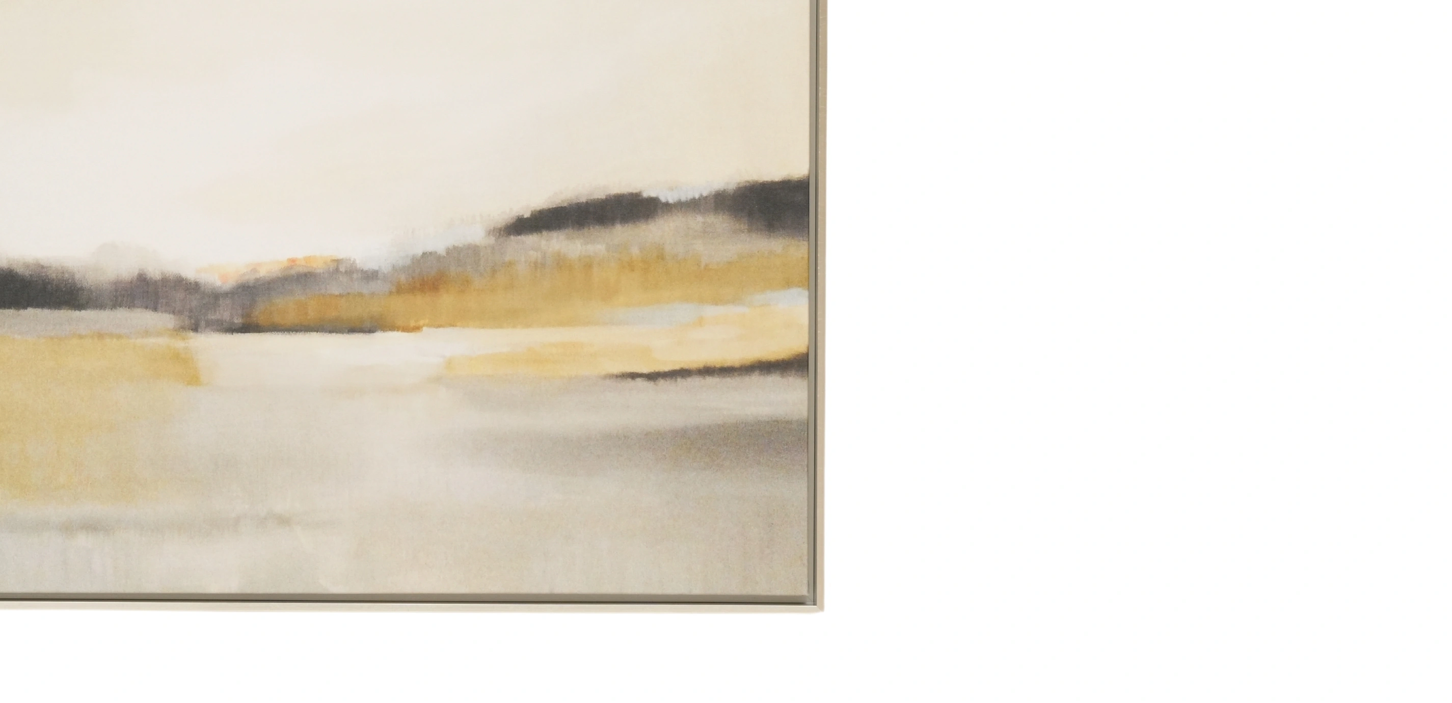Experience a seaside sunrise in this abstract landscape anchored in a neutral palette. It makes a soothing statement in a traditional space or creates a restful focal point in contemporary surroundings.