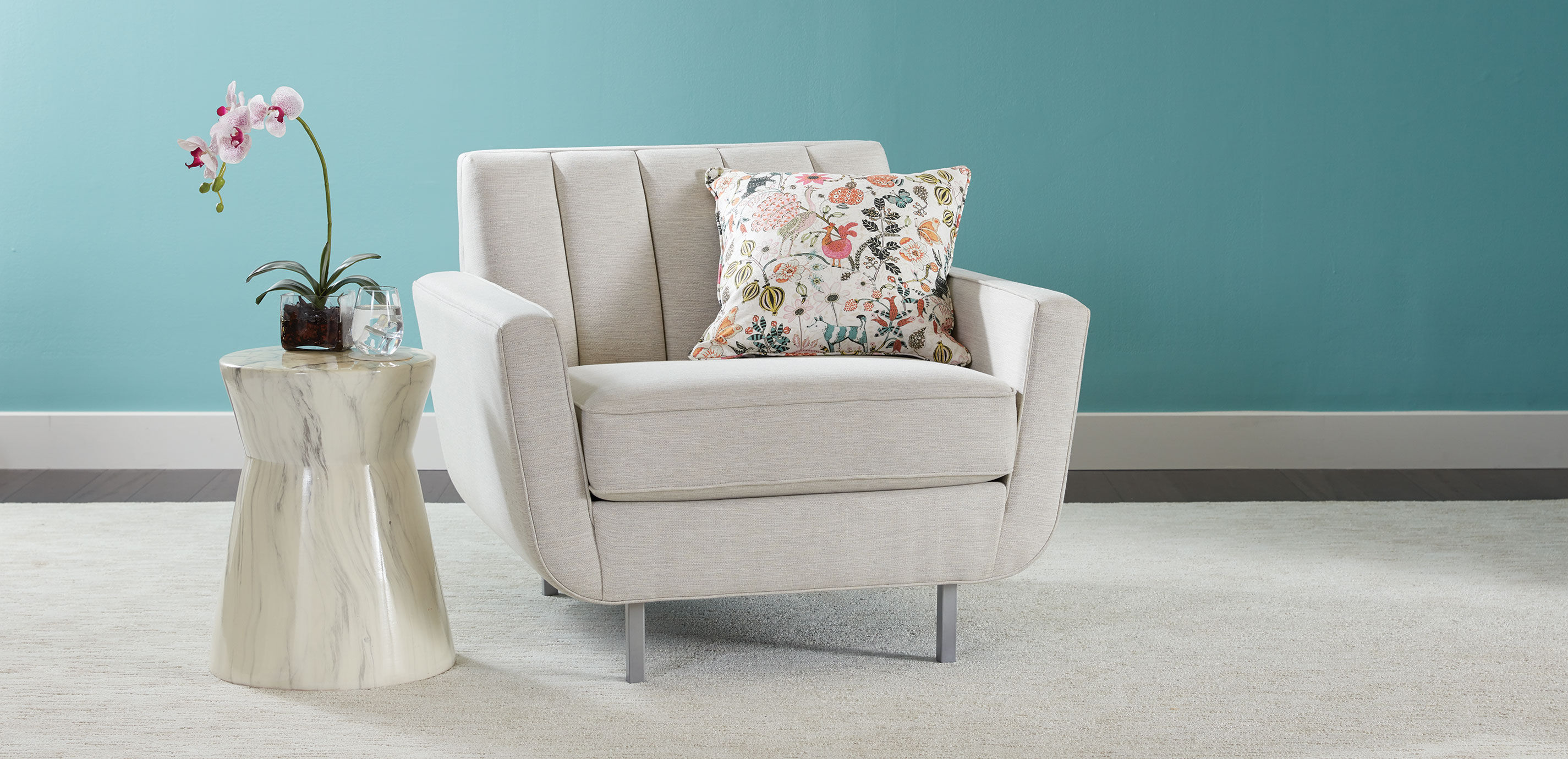 All the elegance of a marble banquet hall captured in a petite ceramic accent table. You'll love having a seat (or two!) next to Orson.