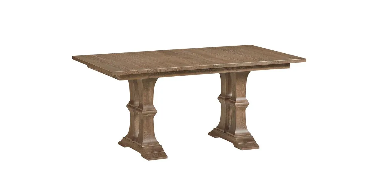 "Featuring sculptural, neoclassically influenced double pedestals, our Piermont dining table can go formal or farmhouse depending on your finish choice. Available in two lengths and two top styles, with an extension top that makes more room for special occasions, and crafted by hand in our workshops.