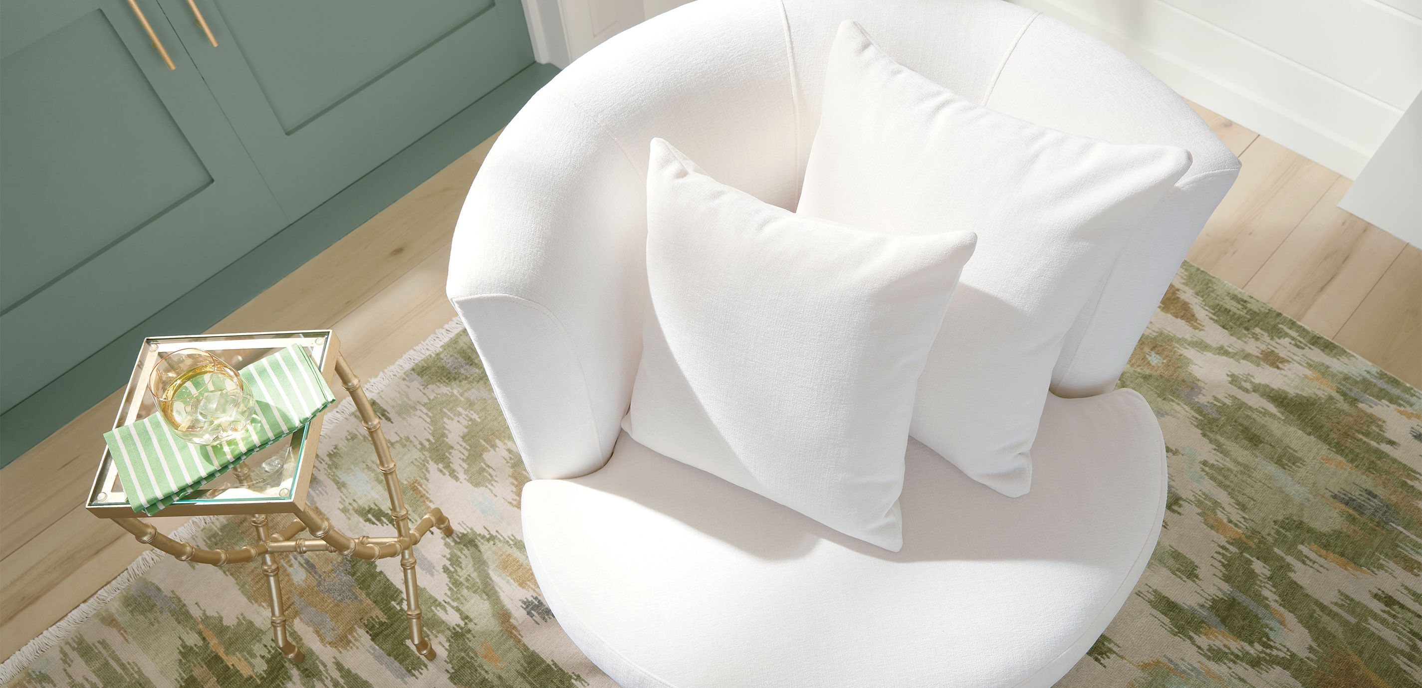 With size options to fit any space and an irresistible, fashionably round profile, our Solenne swivel chair is as close as it gets to poetry in motion. Select your favorite fabric, from solid colors to patterns galore, and we'll custom-craft your Solenne in our North American workshops. An inviting round swivel chair available in 3 sizes: 36", 42", and 48". 36" Swivel includes 1-18" & 1-20" pillows; 42" Swivel includes 1-22" & 1-20" pillows; 48" Swivel includes 2-25" & 1-20 pillows Tailored by hand over a durable engineered panel frame Poly-wrapped foam cushions provide a soft, structured seat We offer our most popular options online. To view every available fabric and custom option, visit a Design Center.