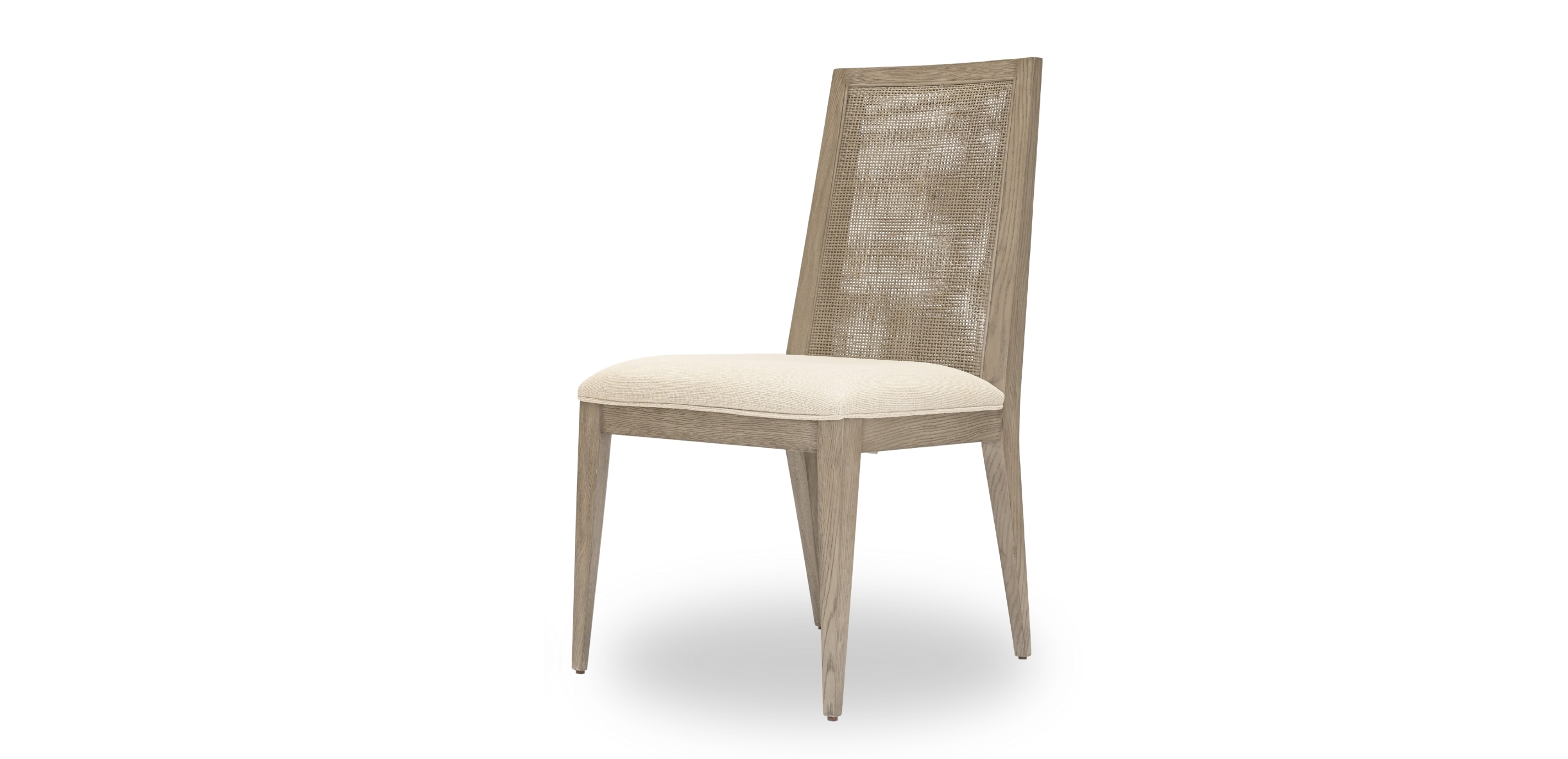 Usher in a new era of casual dining perfection. This clean, contemporary oak-frame armchair has a finish that our artisans wire-brush by hand to bring out the wood grain. A pair of welcoming arms surround a cozy cushioned seat, inviting you to linger over dinner (and definitely have dessert!). The chair's woven back, crafted from sturdy rattan, adds texture and a healthy helping of nature-inspired appeal. An oak-frame armchair for casual dining, with sleek lines and a striking woven back Gorgeous oak frame has a wire-brushed finish to bring out its wood grain Woven back crafted from sturdy rattan for a look that's both durable and beautiful Cushioned seat can be upholstered in a range of performance fabrics to resist spills and stains